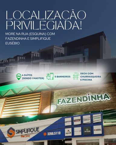 Residencial Solaris Vita! Casas de Altíssimo padrão em rua privativa com segurança 24h e equipado com portaria inteligente. Localização privilegiada, ao lado do Shopping Eusébio Open Mall, Casas Duplex amplas. Conheça o Solaris Vita. Projeto com 03 Tipo de fachada (Capri, Milão e Veneza)